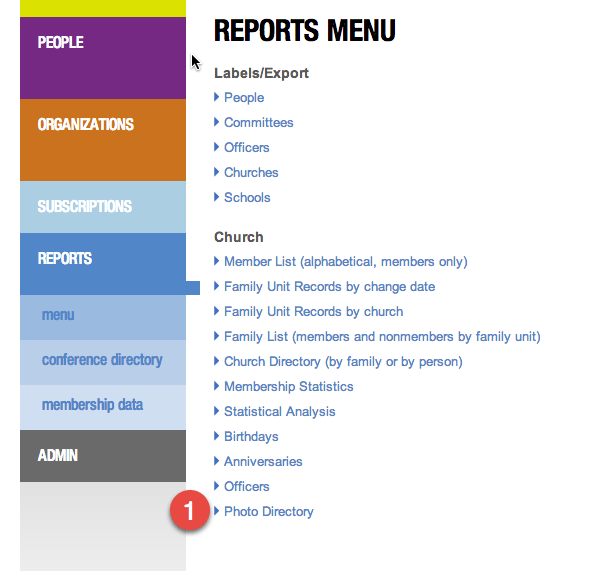 - Click the Photo Directory link on the Reports menu.